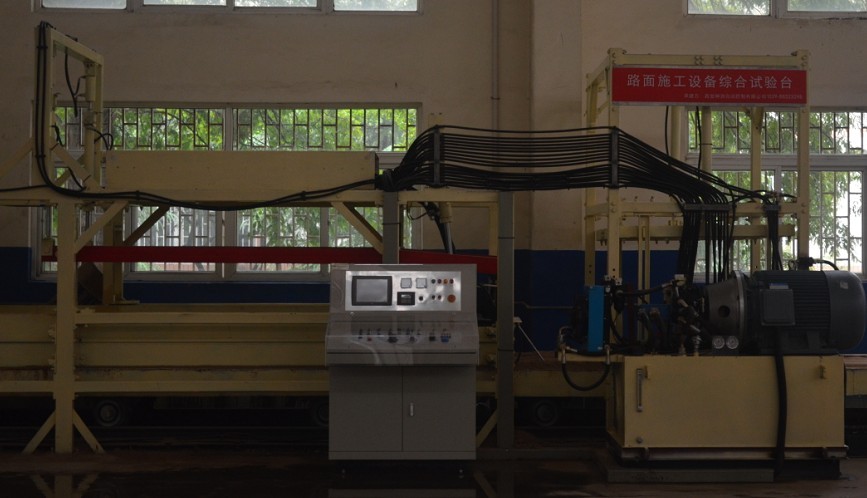 试验台用于研究沥青混凝土摊铺机的工作原理、找平机理,改进摊铺机性能,进行路面摊铺试验;实验台还可进行。可更换工作装置用于水泥混凝土摊铺机、沥青混凝土路面铣刨机理试验、沥青路面养护修补试验等。试验台上可进行试验项目: